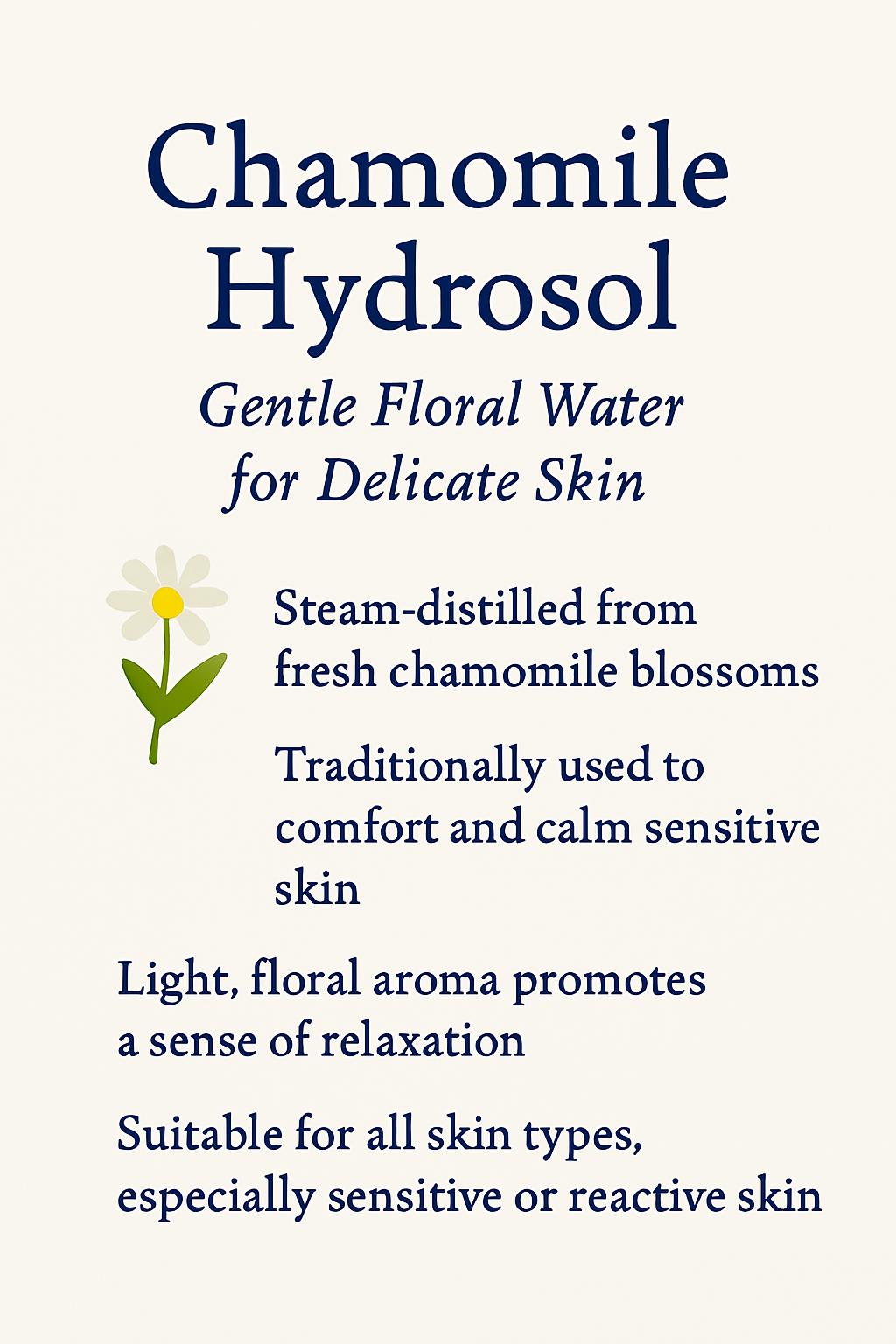 Rose Water & Chamomile Hydrosol — naturally calming and skin-balancing botanicals