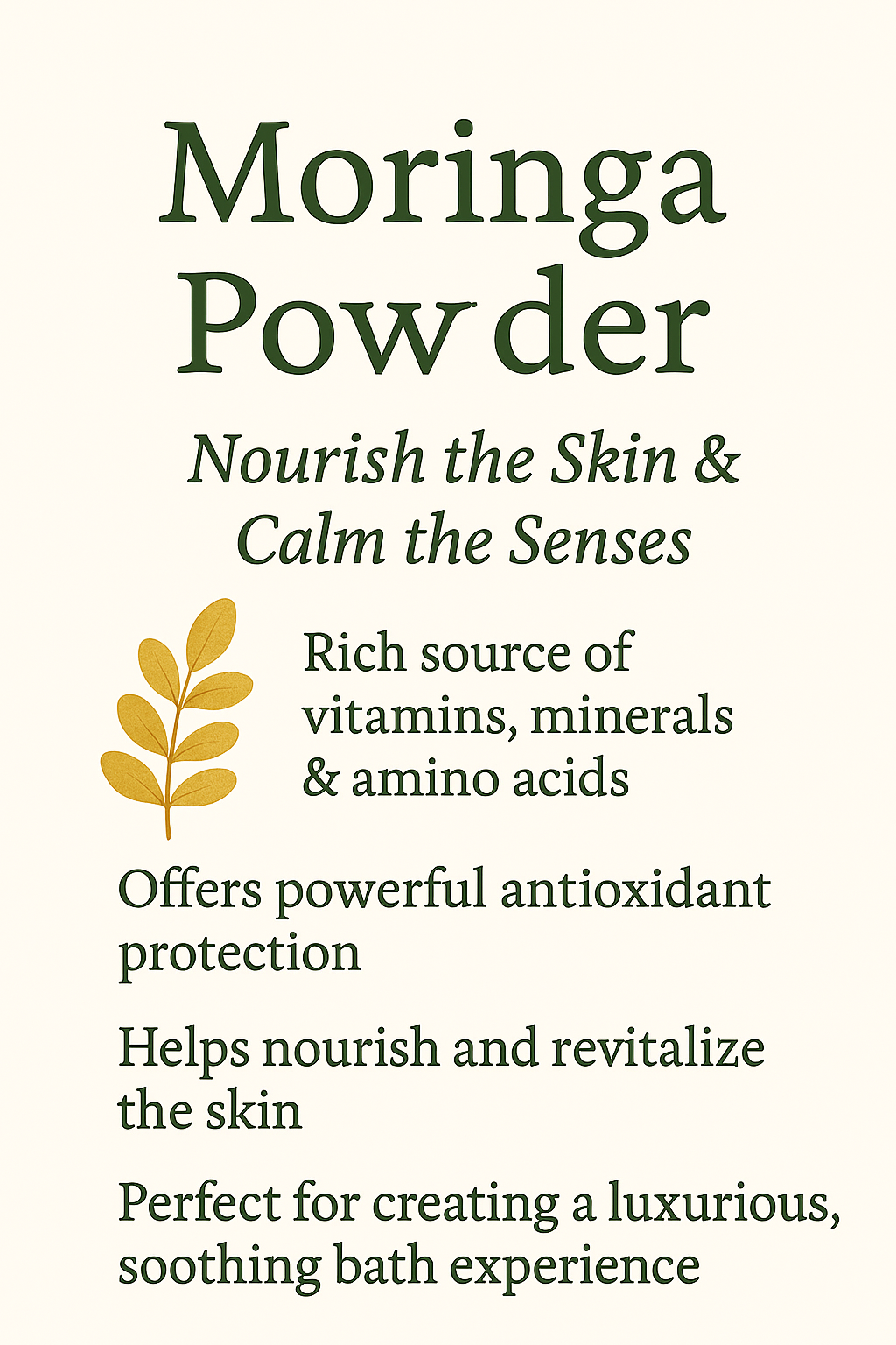 Moringa Powder & Moringa Oil — antioxidant-rich and known for skin-rejuvenating properties