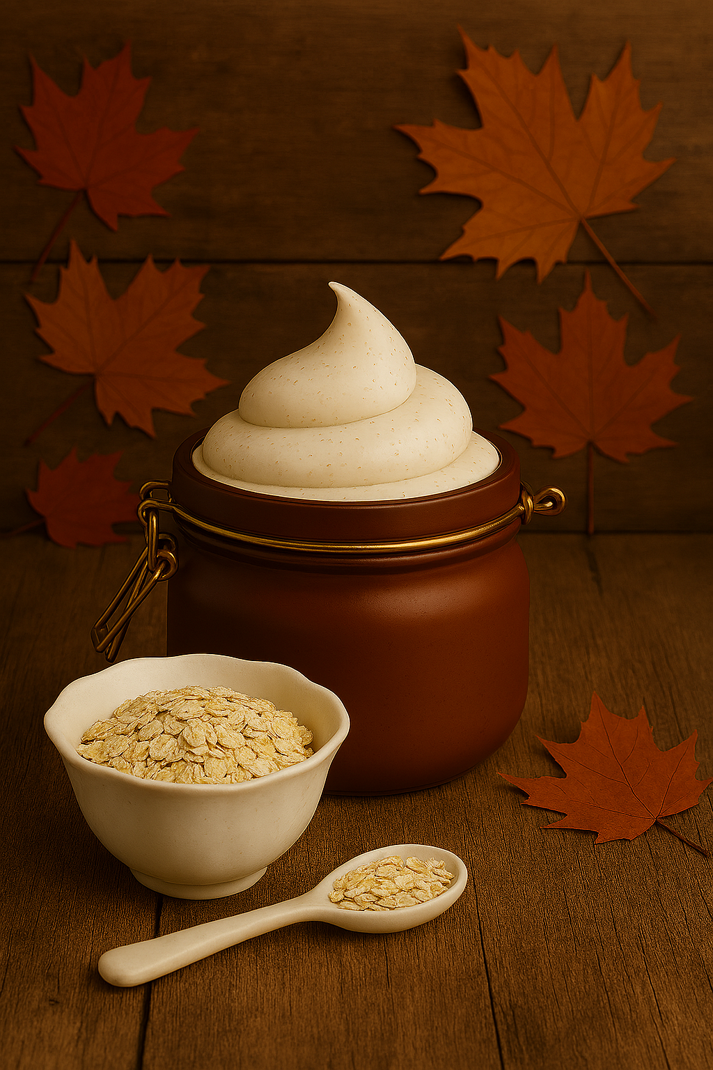 Whipped like a cloud and scented like a forest in fall, Oat & Ember Comfort Cream is your skin’s seasonal sanctuary. This limited-edition mousse is crafted from a quartet of rich, skin-loving butters: Mango, Shea, Oat, and Kokum, each chosen for its unique texture and gentle touch. Together, they create a velvety blend that melts into the skin like golden light.
